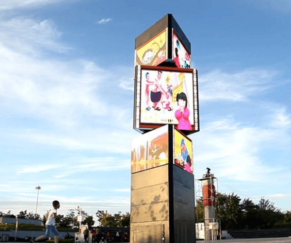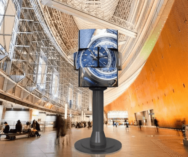 La durabilité est assurée par des matériaux de qualité et des mécanismes conçus pour un usage prolongé. La maintenance est plus exigeante que pour un poster LED standard en raison des pièces mobiles.